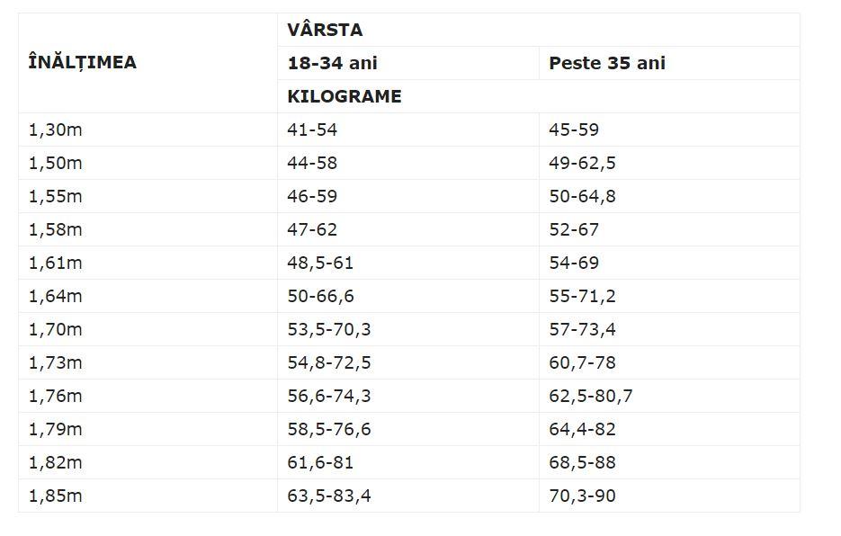 Tabel Care Este Greutatea Ideală In Funcţie De Varstă Si Inălţime