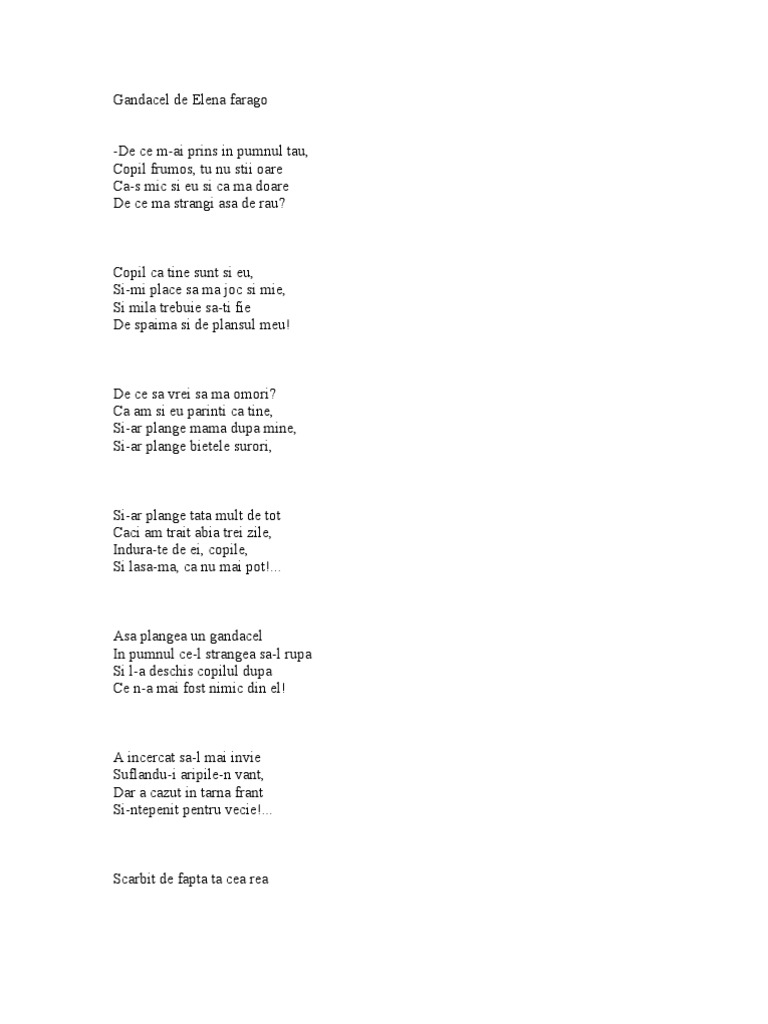 Gandacelul De Elena Farago Versuri Poezii