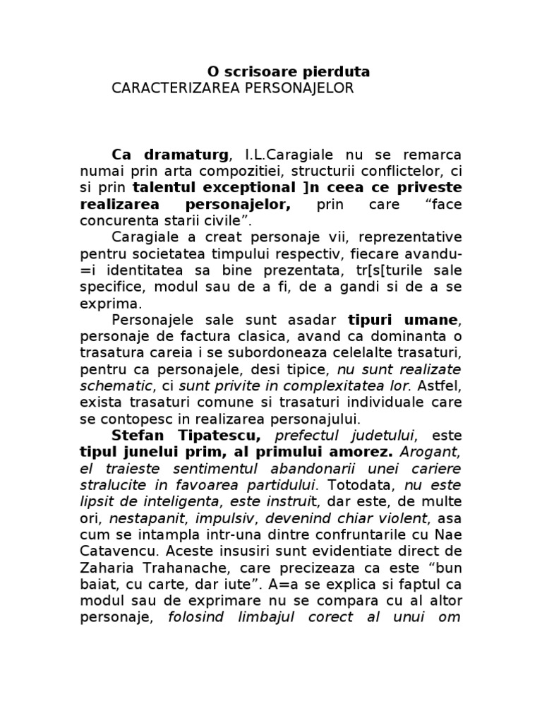 O Scrisoare Pierdută Caracterizarea Personajelor Wattpad