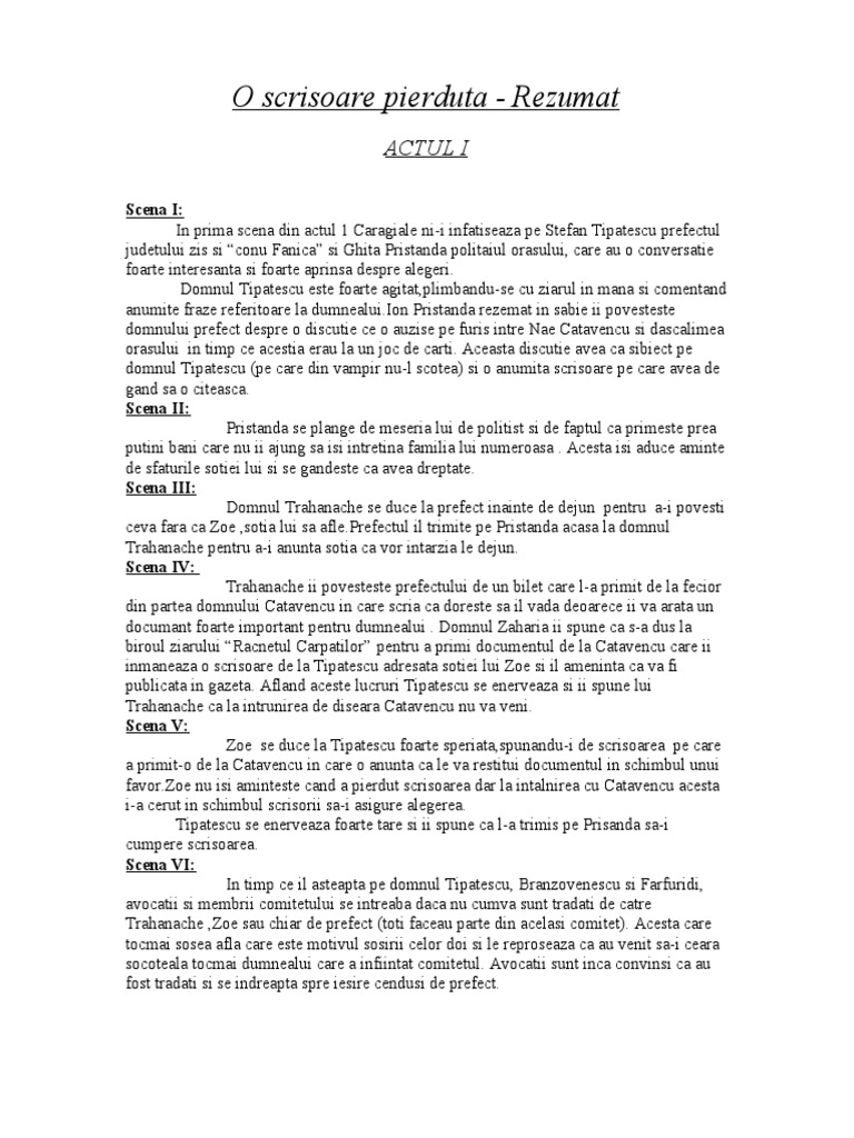 Rezumat O Scrisoare Pierduta 327924 Graduo